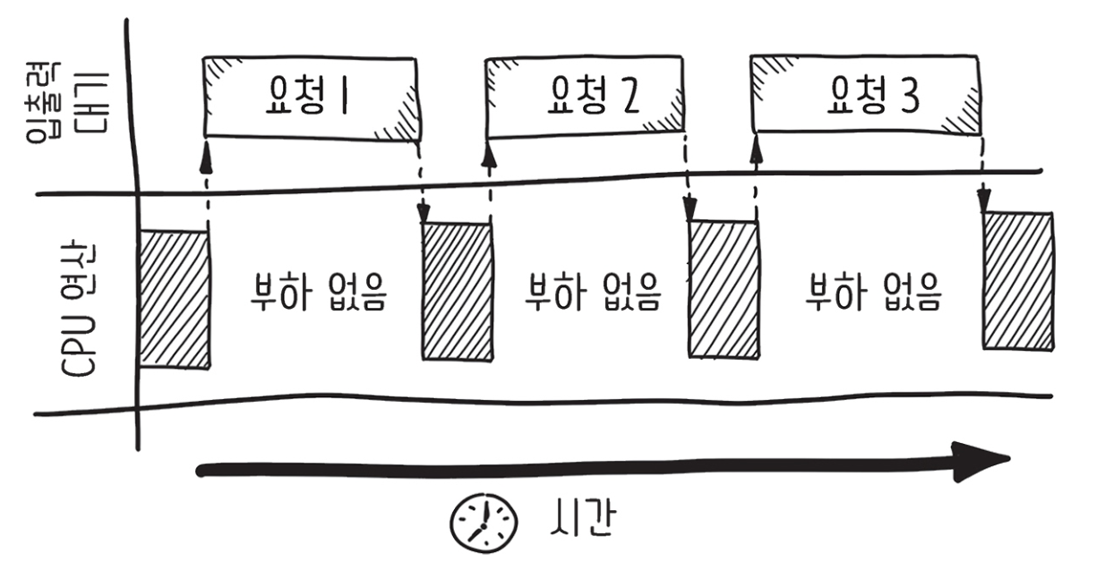 - 디스크 전혀 읽거나 안써도 키보드 또는 마우스를 통한 사용자 입력 기다리며 대부분의 시간을 보내기 때문