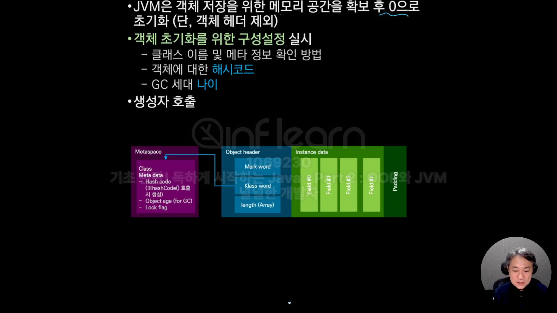 - JVM은 객체 저장을 위한 메모리 공간 확보 후 0으로 초기화(단, 객체 헤더 제외)