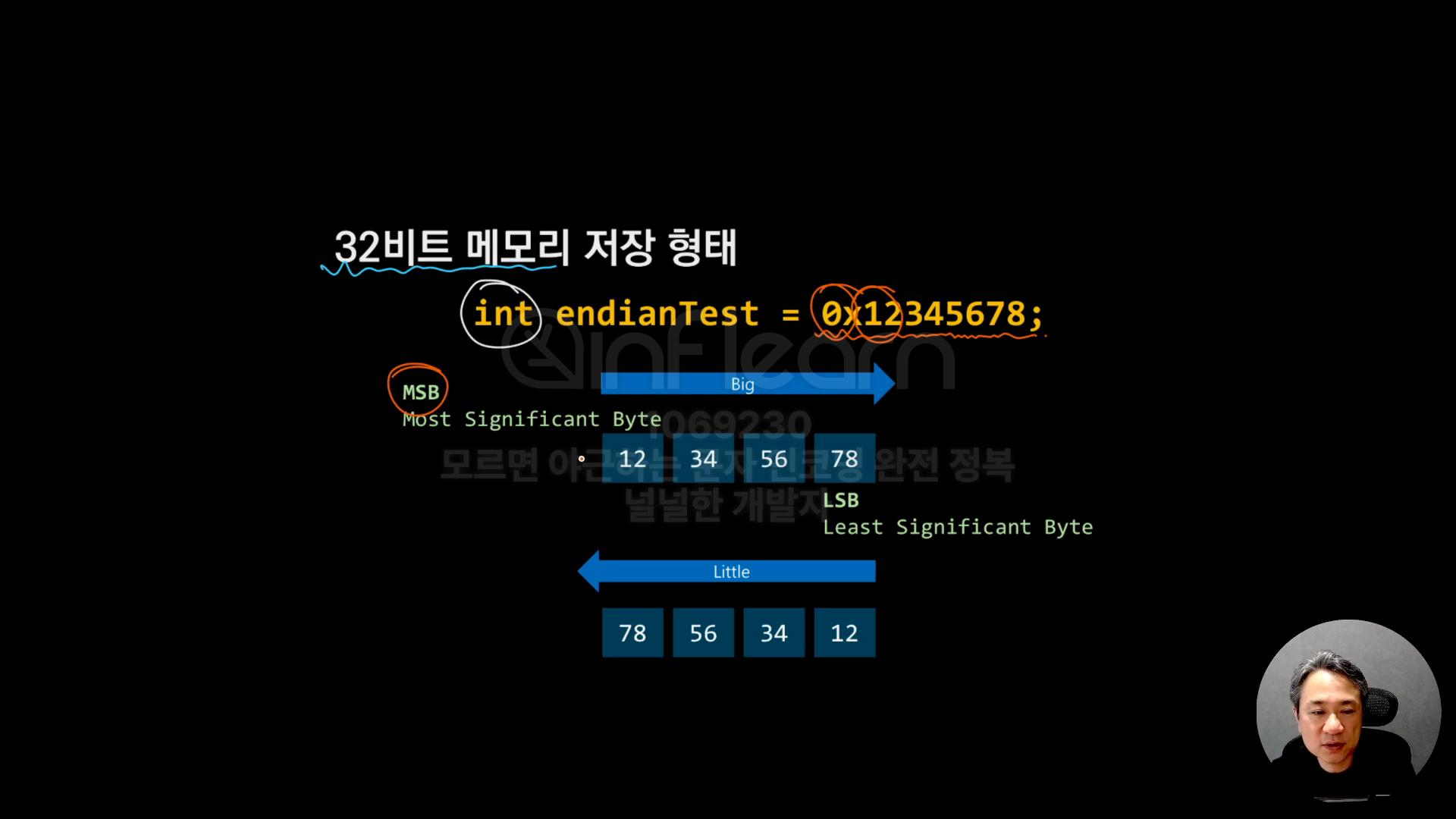 - 가장 낮은 자릿수에 해당하는 바이트가 왼쪽에 위치하므로 순서가 뒤바뀌는 것이 특징(PC의 일반적 형태)