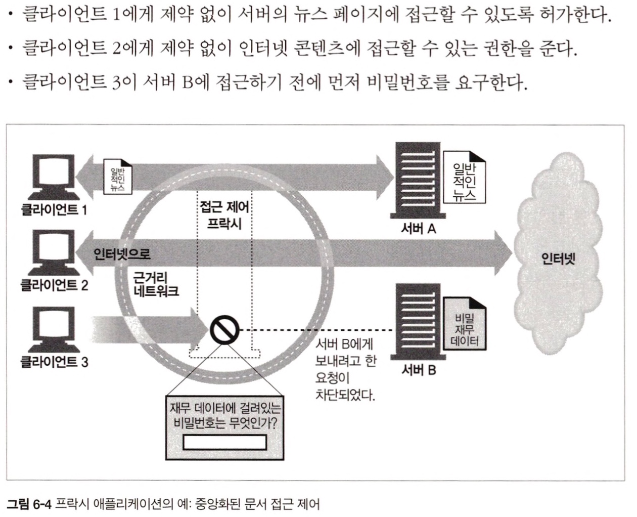 실용적으로 유용한거라면 무슨 일이든 한다. 보안을 개선, 성능 향상, 비용 절약. 또한 프락시는 모든 http 트래픽을 들여다보고 건드릴 수 있기에, 프락시는 부가적인 가치를 주는 여러 유용한 웹 서비스를 구현하기 위해 트래픽을 감사하고 수정할 수 있다.