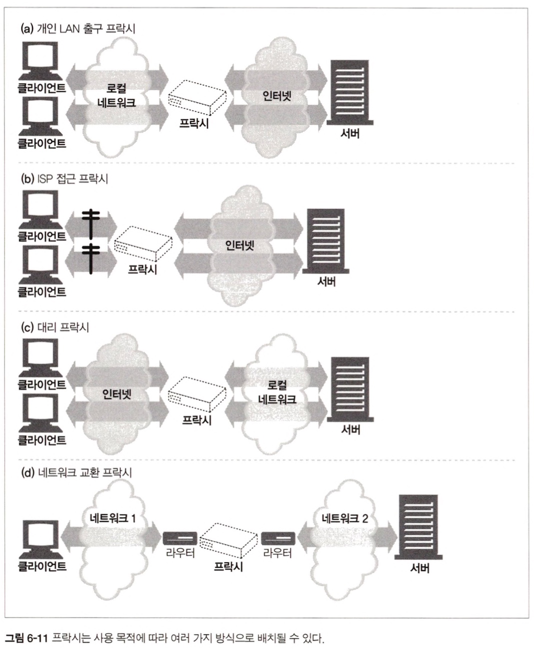 출구(Egress) 프락시, 접근(입구) 프락시, 대리 프락시(리버스 프락시), 네트워크 교환 프락시