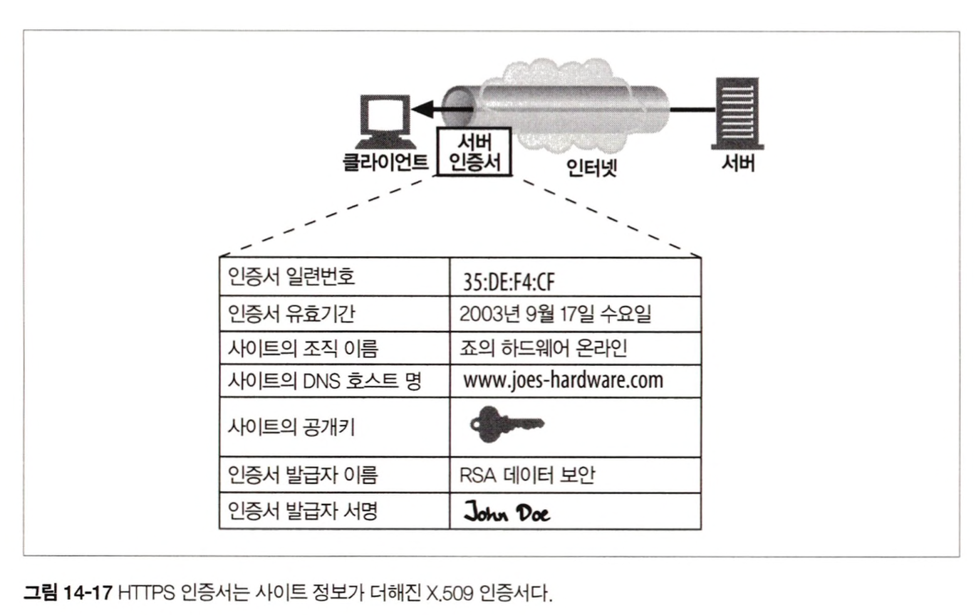 HTTPS 트랜잭션은 항상 서버 인증서를 요구한다. 서버 인증서는 조직의 이름, 주소, 서버 DNS 도메인 이름, 그외 정보를 보여주는 X.509 v3에서 파생된 인증서다. 사용자와 사용자 클라는 이 인증서가 믿을만한지 확인위해 인증서를 검증할 수 있다.