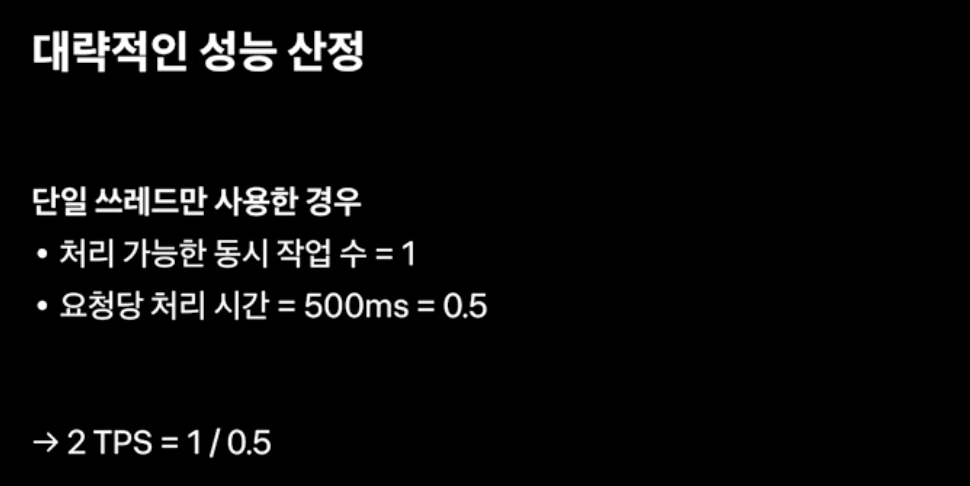 TPS = 처리 가능한 동시 작업 수 / 요청당 처리 시간(초 단위)