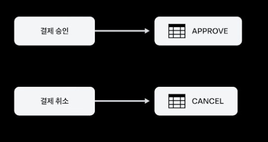 - 결제 원장: 고객이 결제하거나 취소한 거래내역을 보관하는 DB(테이블)