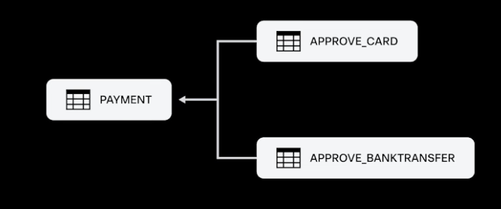 카드 취소/부분 취소는 각각의 테이블에 저장되고 있었고 계좌이체 취소/부분취소는 한 테이블에 저장되고 있었다.