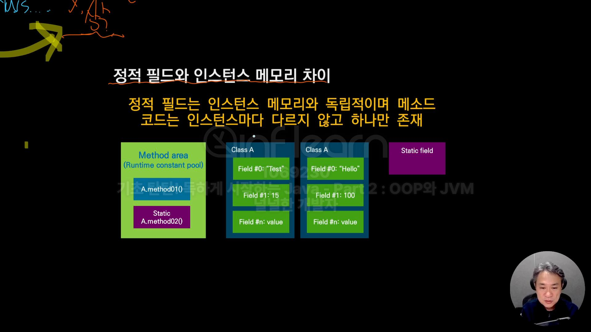 • 일반 메서드와 달리 인스턴스 선언 없이 호출 가능