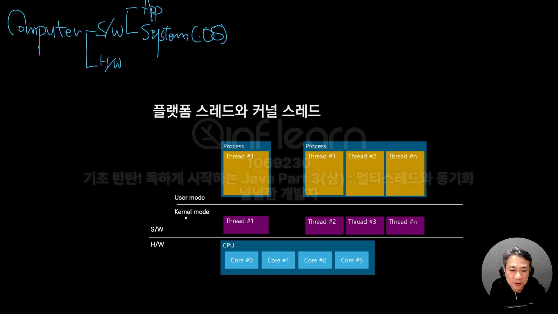 - 다른 흐름으로 전환(컨텍스트 스위칭)한다는 것은 CPU core의 레지스터 값을 본래의 것으로 복원하는 것