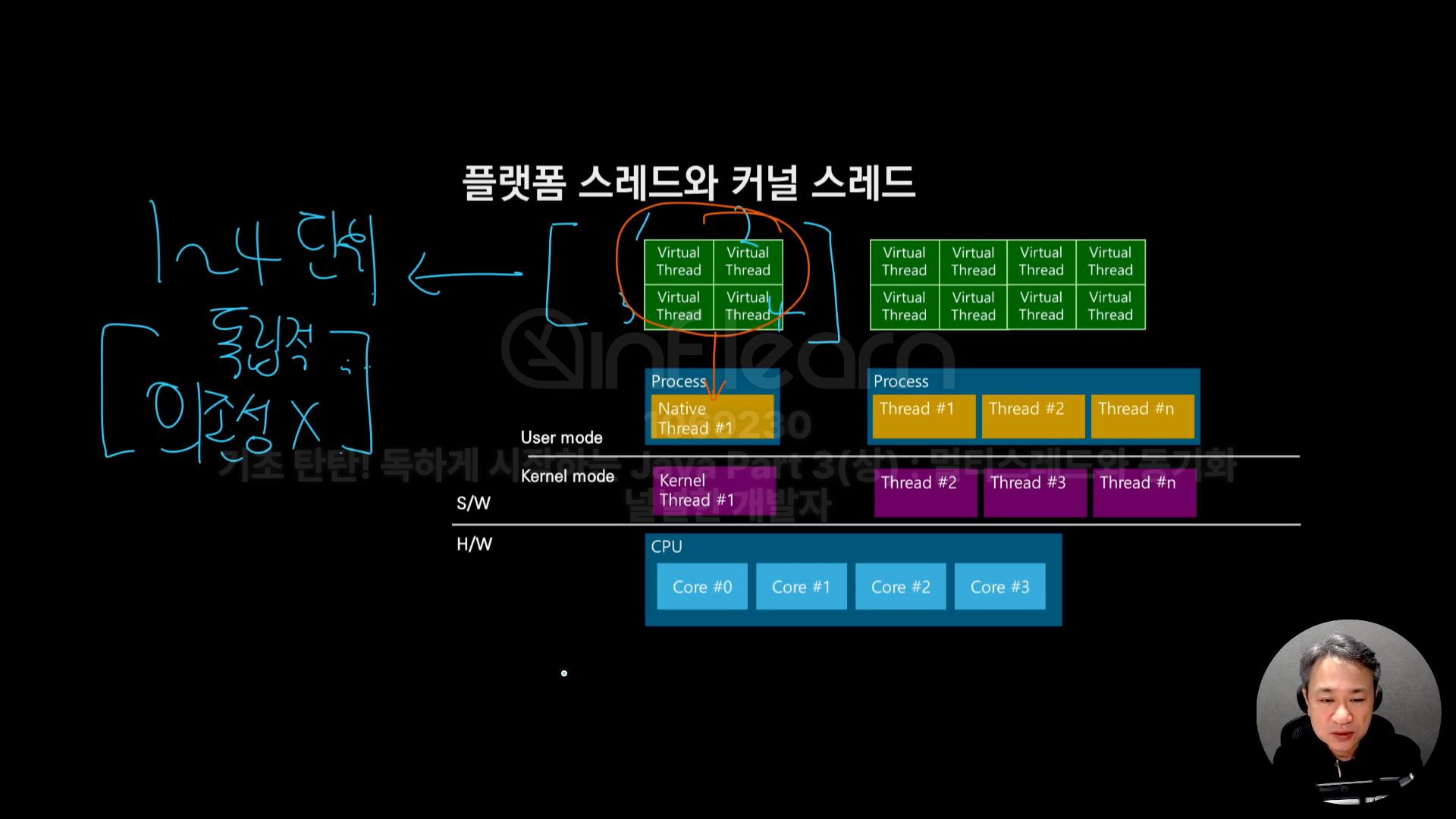 강의 내용 다시 수강 할 만하다. 커널, 플랫폼, 가상 스레드 관계 설명해준다.