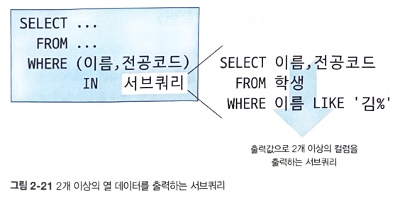 이건 서브쿼리 결과가 여러 개의 열과 행으로 반환
