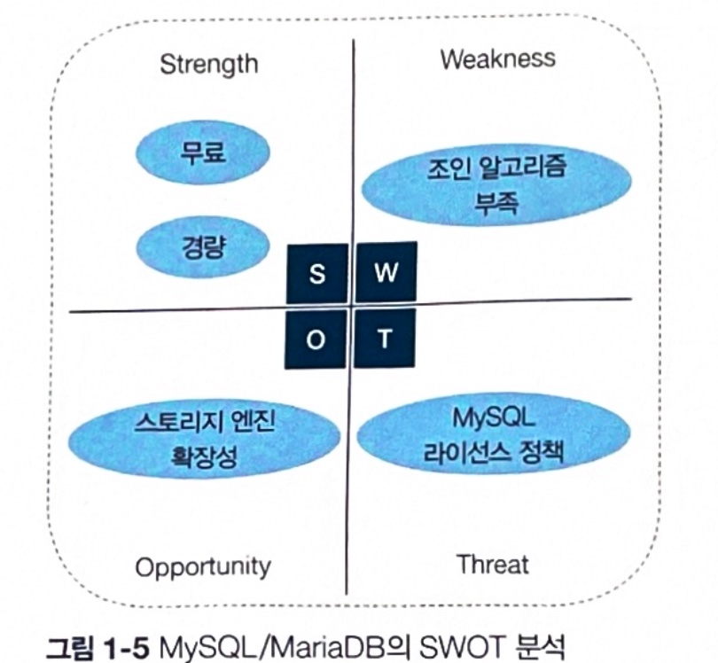정리하자면 MySQL과 MariaDB는 다음과 같은 강점, 약점, 기회와 위협이 존재한다.