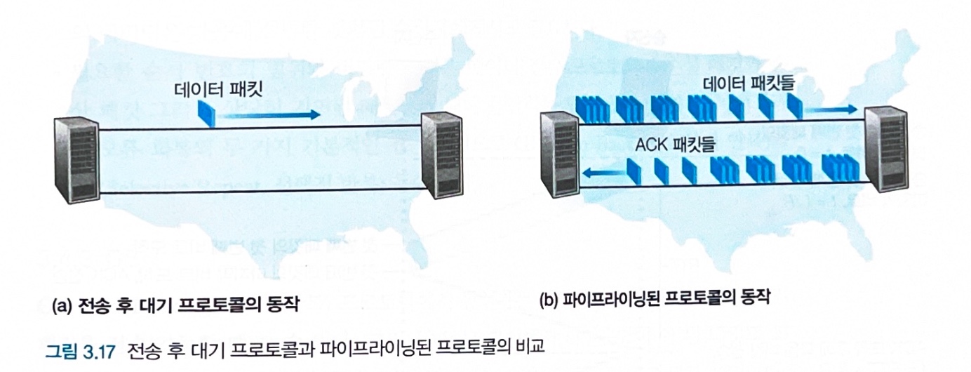 파이프라이닝 방식은 신뢰적인 데이터 전송 프로토콜에서 다음과 같은 중요성 가짐.