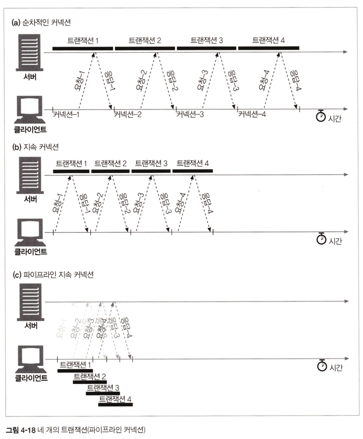 • 실제로 연결할 수 있는 병렬 커넥션의 수는 제한이 있다 지속 커넥션은 병렬에 비해 몇가지 장점이 있다.