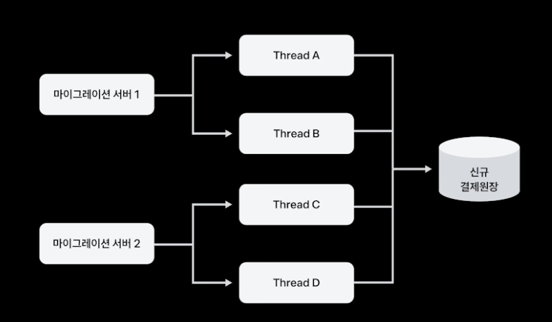 신규 결제원장은 API를 제공시도했으나 배치작업시 API 과부하 생길수있다. 결국 카프카 도입 도메인간 의존성 제거, 각 팀 각자 개발 가능