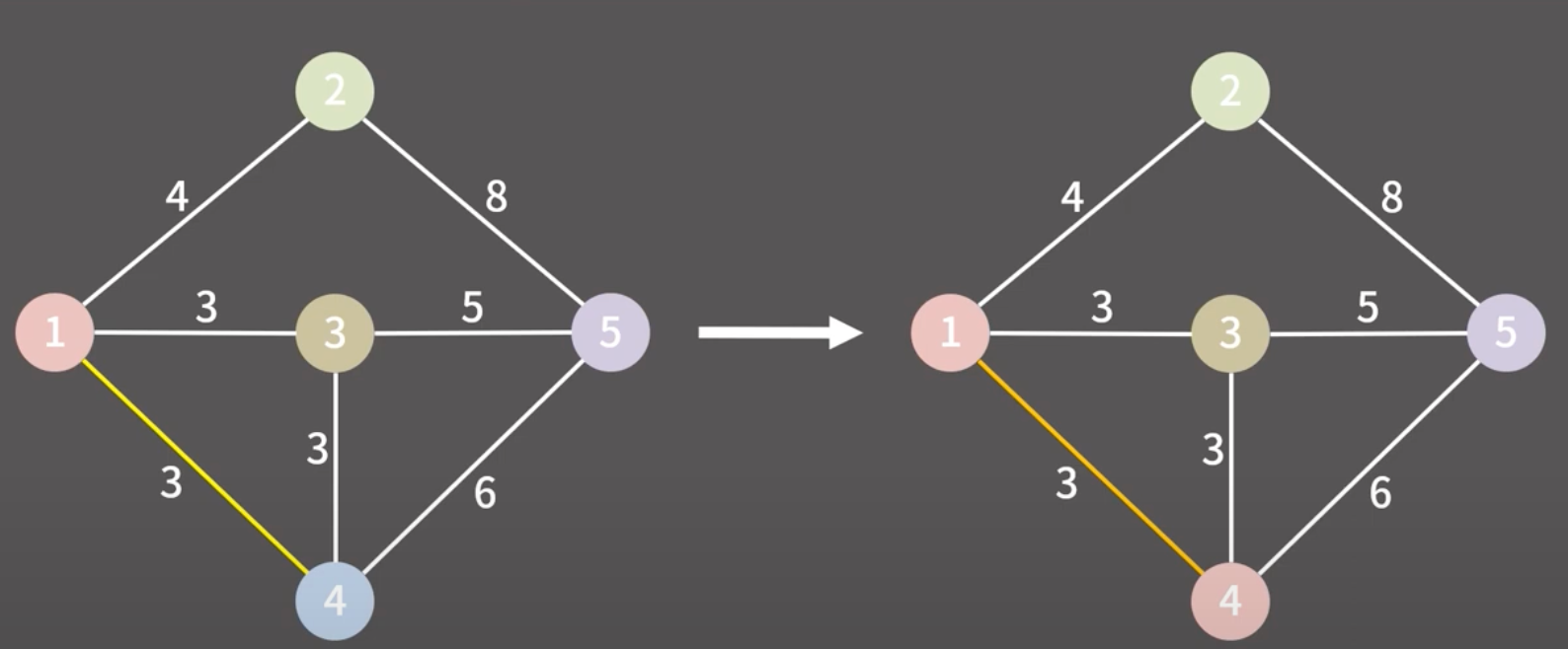 - 간선을 크기의 오름차순으로 정렬하고 제일 낮은 비용의 간선 선택