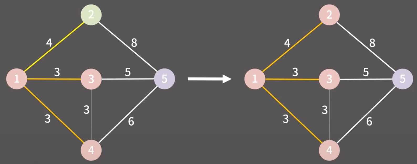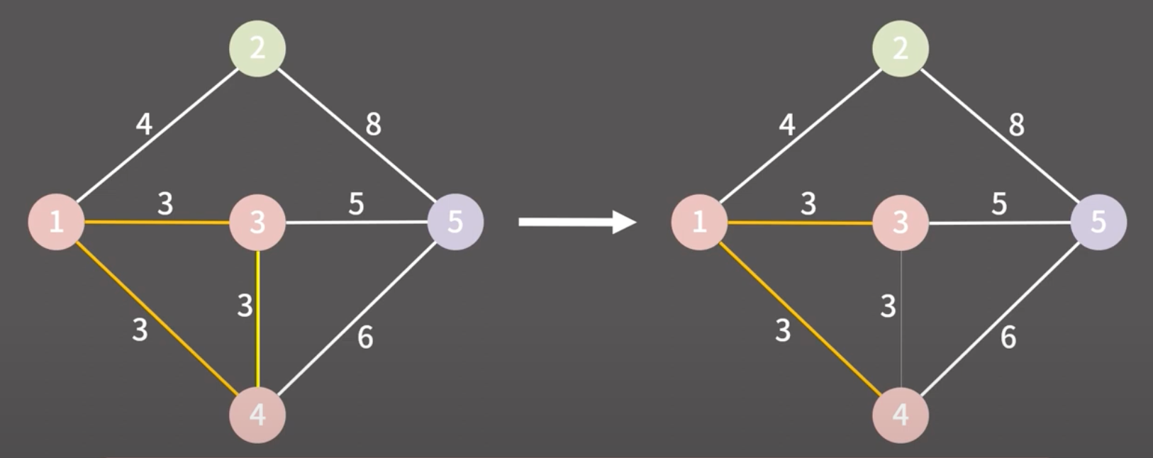 이때는 이미 그룹이 동일하기에 아무것도 안하고 다음 간선으로 가면된다!