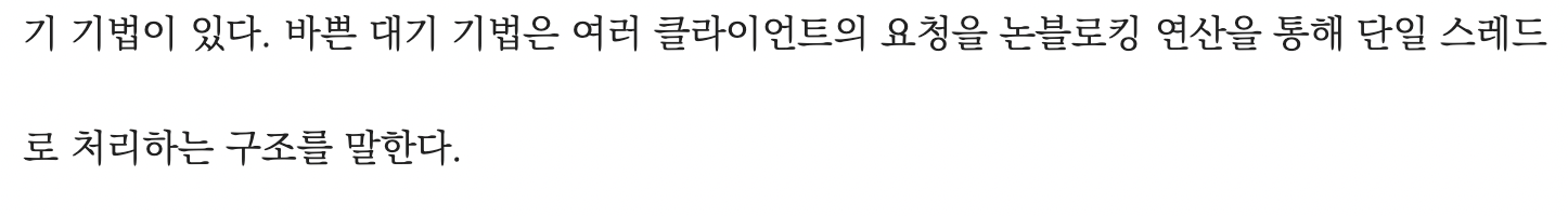 - 스레드 기반 동시성 포기하고 논블로킹 IO 도입하면 C10k 문제 회피하고 확장성 더 개선가능