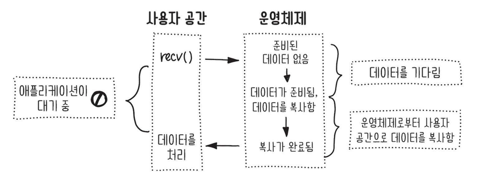 - 대기를 일으키는 블로킹 입출력은 비효율적임