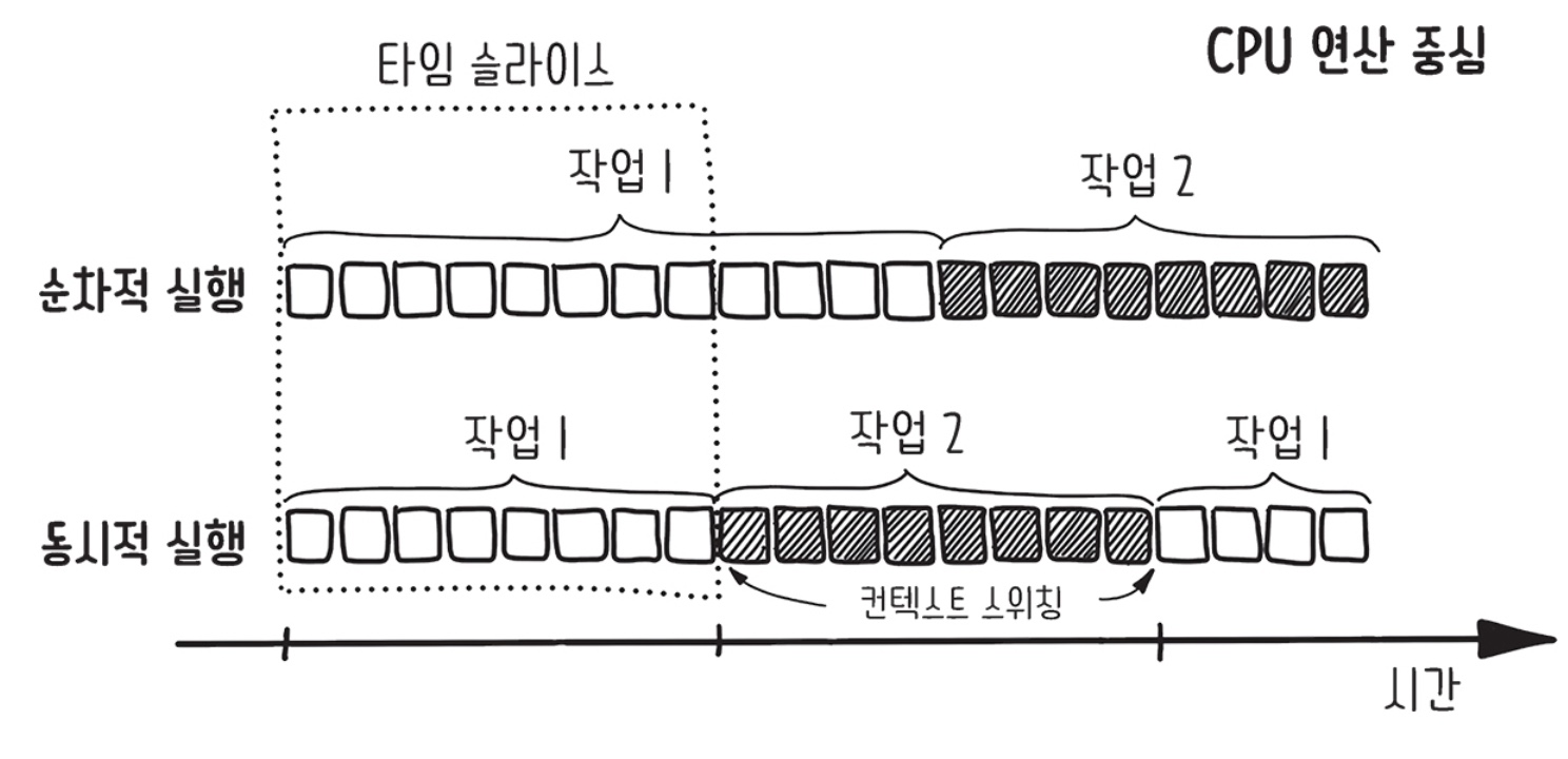 - 연산 중심 작업은 기다릴 필요 없이 계속 진행 가능하지만, 컨텍스트 스위칭이 이를 방해