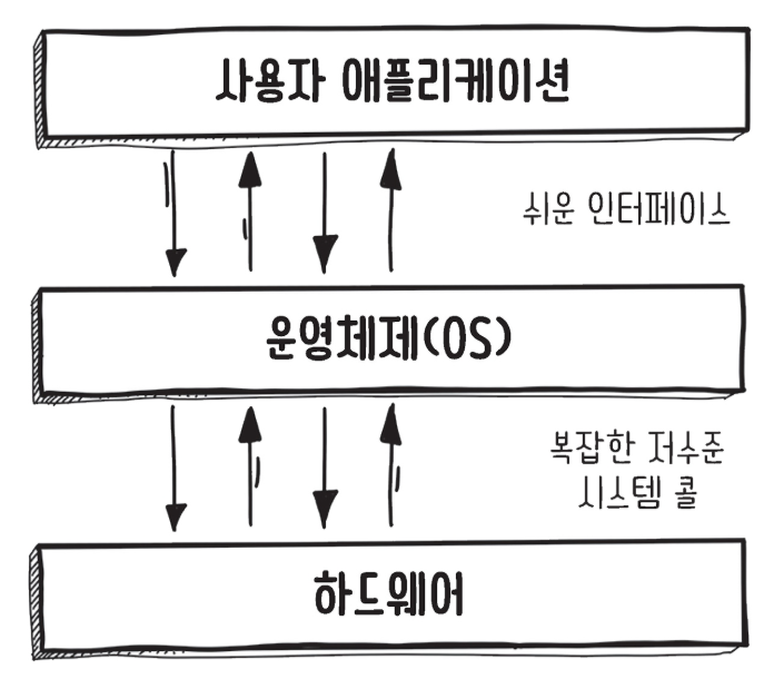 • OS 는 하드웨어와 개발자 사이 어어주는 저수준 시스템 인터페이스